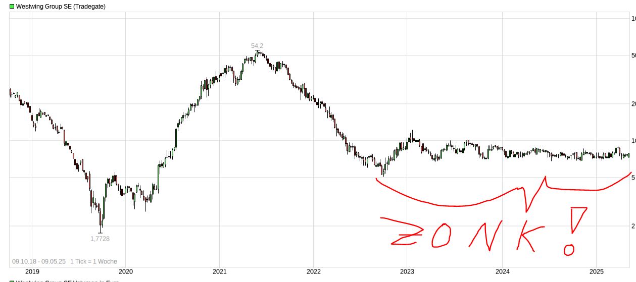 Hier hat man wenigstens eine Bodenbildung über die letzten 2-3 Jahre. Da sehen andere Highflyer und Nebenwerte der Coronazeit übler aus.