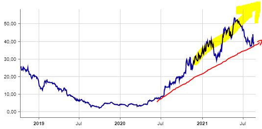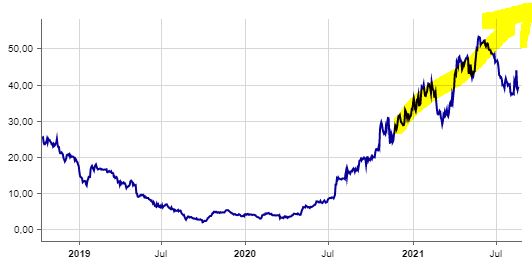 das erreiches des ATH von ca 55euro erwarte ich dieses jahr noch - halte ich für eine angemessene erwartungshaltung. eine seitwärtsbewegung die 1j anhalten soll macht bei stetigen erreichen der ziele keinen sinn.