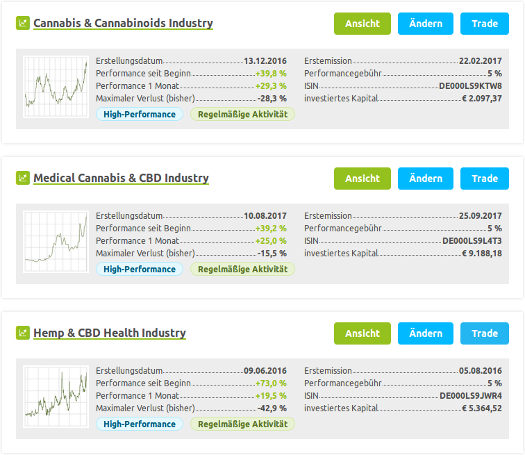 Betroffen sind derzeit das "Cannabis & Cannabinoids Industry" - Wikifolio