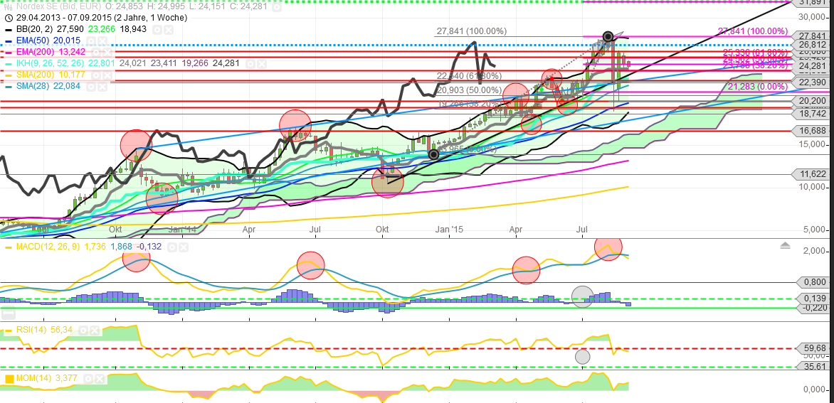 bei den 2 Letzten Signalen auf Wochensicht hat Nordex seine stärksten Korrekturen bevor es wieder schnell hochlief.