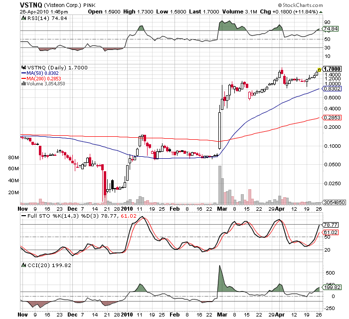 Visteon rose 17 cents, or 11 percent, to $1.69 at 1:17 p.m. New York time in over-the-counter trading.