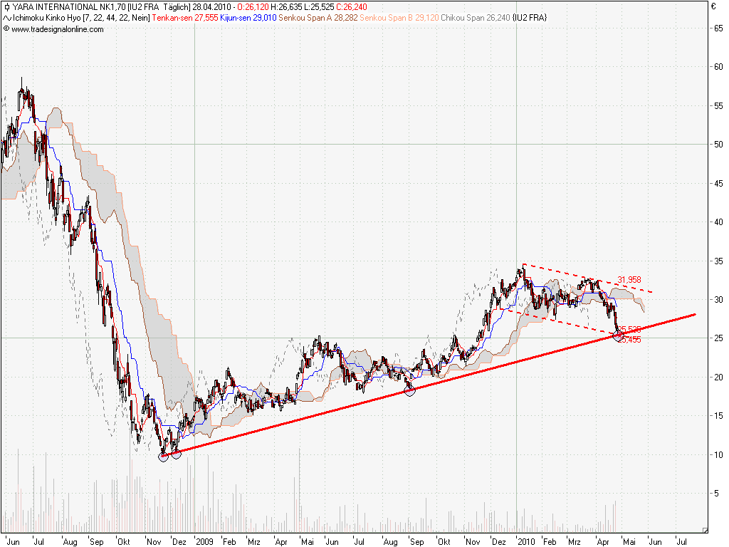Heute hat sich Yara beeindruckend gehalten, denke ich. Auch die Unterstützung hat die letzten Tage (knapp) gehalten. Bin sehr gespannt, was morgen passiert, nach den Zahlen... glaube aber nicht, dass es nochmal stark nach unten geht.