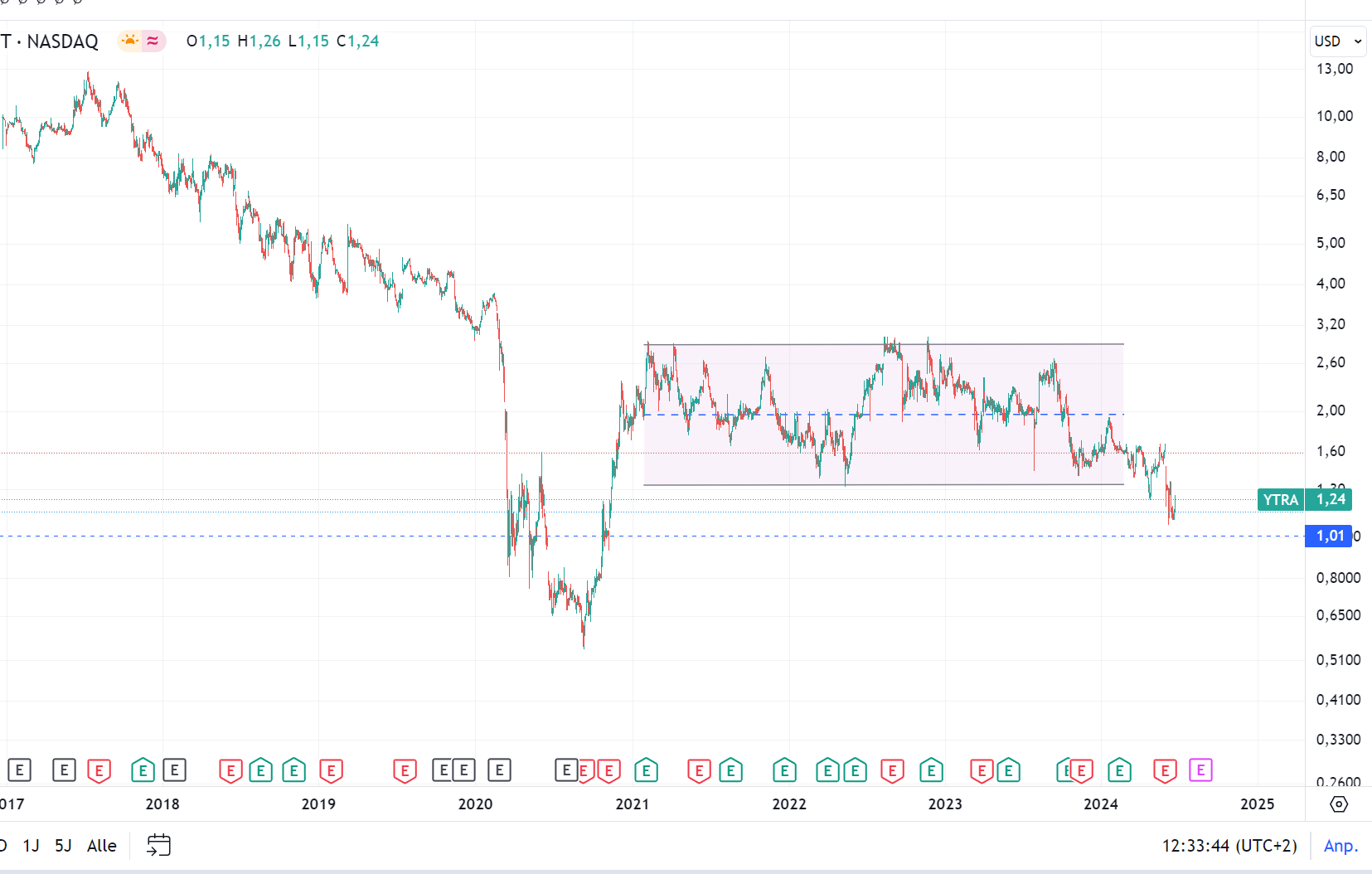 Schwierig zu beurteilen, ob man alle Informationen bekommt. Der Kurs könnte noch weiter nachgeben, da unten wird es dann hochgradig interessant.