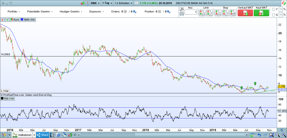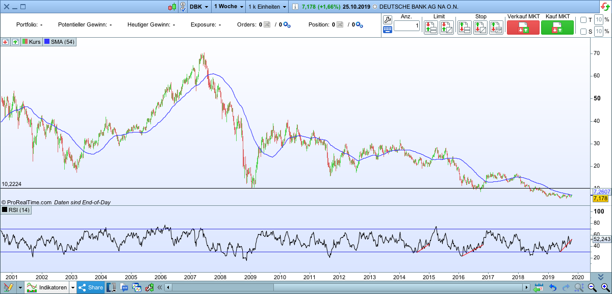 Das Grundproblem der Banken ist bekanntlich Desinvestment, sprich alle wollen sparen und niemand will (produktiv) investieren. Kredit, von dem die Banken leben, wird nicht nachgefragt und deshalb sinkt sein Preis, der Zins. Der Dank dafür gebürt, ua, Olaf Scholz, nicht Draghi. Obendrauf kommt die (Eigen)Regulierung der Banken, die potentielle Kreditnachfrage restriktiver bedienen als vor Lehman. Aus der Falle seh ich bis auf weiteres kein Entkommen, deshalb auch nur taktisch long.