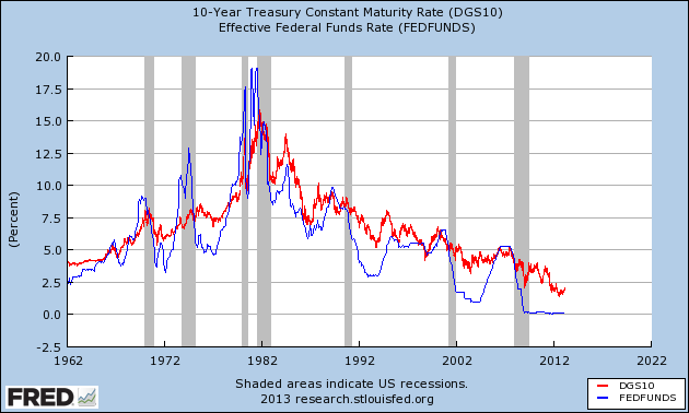 Die ZB kontrolliert zwar das kurze Ende, folgt aber tendenziell den langen Zinsen, die primär von Konjunkturerwartungen (sprich Inflationserwartungen) sowie damit zusammenhängend von Staatsverschuldung vs erwartetem Wachstum definiert werden. Weitere Faktoren greifen untergeordnet ein wie etwa via leistungsbilanzieller Überschüsse erzeugter Anlagebedarf in Hartwährung usw. So tendierten zB in den 80'ern die US Fedfunds auf 12, 13 %, nachdem die Federal Debt aus dem Ruder gelaufen war...