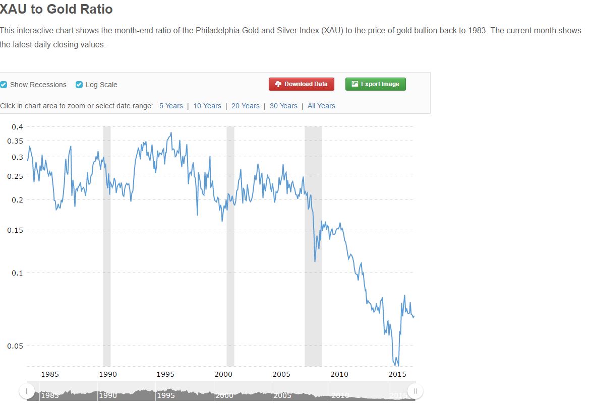 Hier das XAU-Gold-Verhältnis: Im Vergleich zu Ende 2015, als die Gold-Verzweiflung maximal war, sind wie immer noch fast 100% höher.