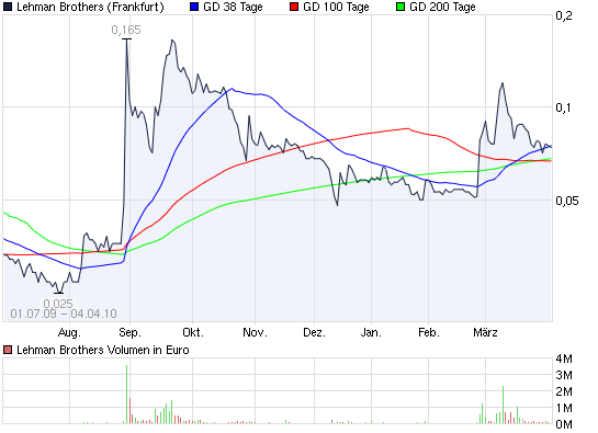 Bei gleicher Gelegenheit ist dort voraus-schauend darauf HIN-wiesen worden, dass der RISING-SMA(200)-Cross-over-100 Beziehungs-weise der FALLING-SMA(100)-Down-under-200 nach diesem Golden Cross im Verdachte eines FEHL-Signal's steht, so dass mir jetzt nur noch die phlegmatosophische Pflicht der BESTÄTIGUNG bleibt, dass die dort als "Chartistische SONDER-Situation" angesagte Figur inzwischen VERIFICIERT worden ist: http://www.ariva.de/Lehman_Brothers_t344623?page=231#jumppos5776