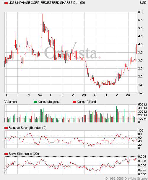 Die Aktien von JDS Uniphase verloren zuletzt 3,5% auf 5,7$ und nähern sich damit ihrem 52W-Tief von 5,12$.