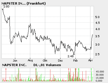 ... auf dem absteigenden Ast! Napster bleibt hochspekulativ. Nach den Dementis von Google zum Kauf von Napster, muß sich die Firma scheinbar doch alleine behaupten gegen die übermächtige Konkurrenz.