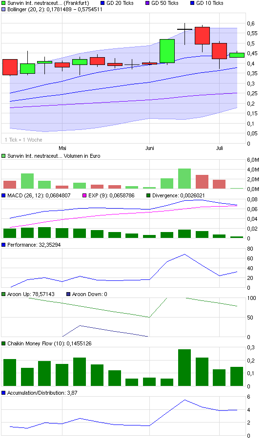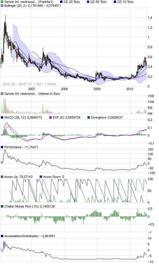 kein zweifel, stevia wird boomen, das wird ein riesenmarkt. die frage ist nur inwieweit sunwin daran teilhaben wird. der newsflow des ceo ist mir ein bisschen zu spärlich um jetzt gleich wieder aufzuspringen. ich beobachte weiter, sobald gute zahlen oder hammernews kommen, bin ich wieder dabei. bis dahin warte ich.