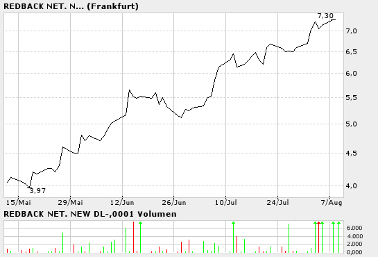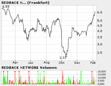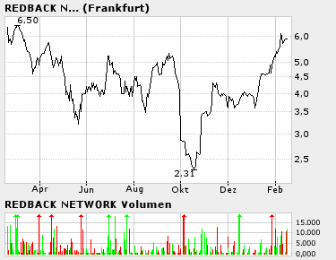 heutigen Ausgabe zum Kauf von RedbackNetworks, da nach der Pleite Ende 2003/Anfang 2004 sich das Unternehmen wieder gemausert hat und gerade vom starken DSL-Geschäft in den Staaten profitiert.