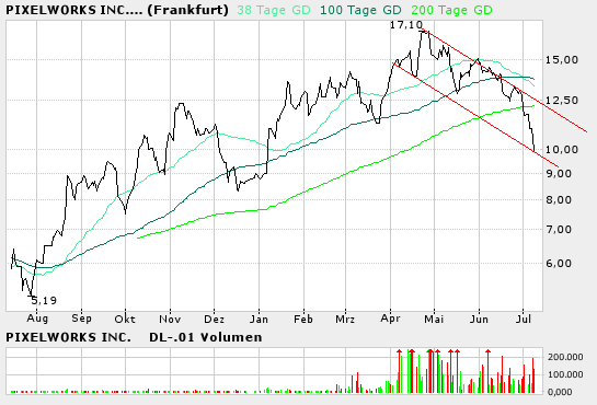 pixelworks hat in den letzten wochen massiv eingebüsst (wie die hl-branche insgesamt). von 20,74$ auf knapp 12$.