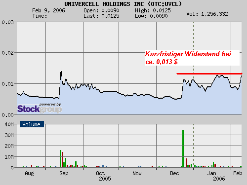 Die Meldung "UniverCell Holdings and Bigstring.com Terminate Merger Agreement" sorgte für einen freien Fall des UVCL Aktienkurses! Warum UVCL die Fusionsbemühungen unterbrach wurde nicht veröffentlicht. Der Kurs brach zusammen!