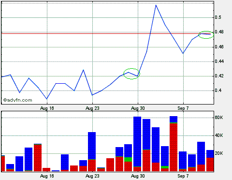 Irgendeinen GRUND muss es doch geben, wieso der CHART der Miranda Gold Corp. (WKN: 900519; ISIN: CA6046731031; Symbol: MRDDF) gegen Ende JULI 2010 plötzlich so auffällig wird.