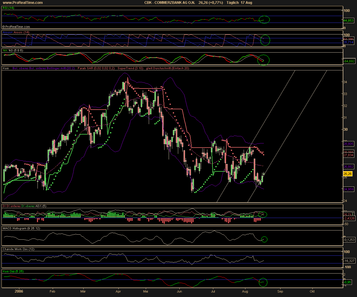 Die Analysten vom tradersreport sehen bei den Aktien der COMMERZBANK AG (WKN: 803200 / ISIN: DE0008032004) ein baldiges erreichen der 38,00 € Marke als sehr wahrscheinlich an. Gestern kam von einem Bankenkonsortium ein erhöhtes Angebot für die ABN AMRO Bank. Aus Sicht der Analysten vom tradersreport macht es weiterhin Sinn für eine große internationale Bank auch ein Auge auf die COMMERZBANK AG zu werfen. Es gibt genügend verfügbare freie Aktienpakete im Markt, die bei dem passenden Preis auch schnell ihren Besitzer wechseln würden. Aus diesem Grund würden die Analysten vom tradersreport weiterhin kein Stück aus der Hand geben. Wenn der Vorstellung gefolgt sind, können Sie sich gemütlich zurücklehnen und dem Übernahmetreiben genussvoll zusehen. Sie sollten Ihre Aktienposition weiterhin mit einem Stoploss auf Schlußkursbasis von 34,00 € absichern.