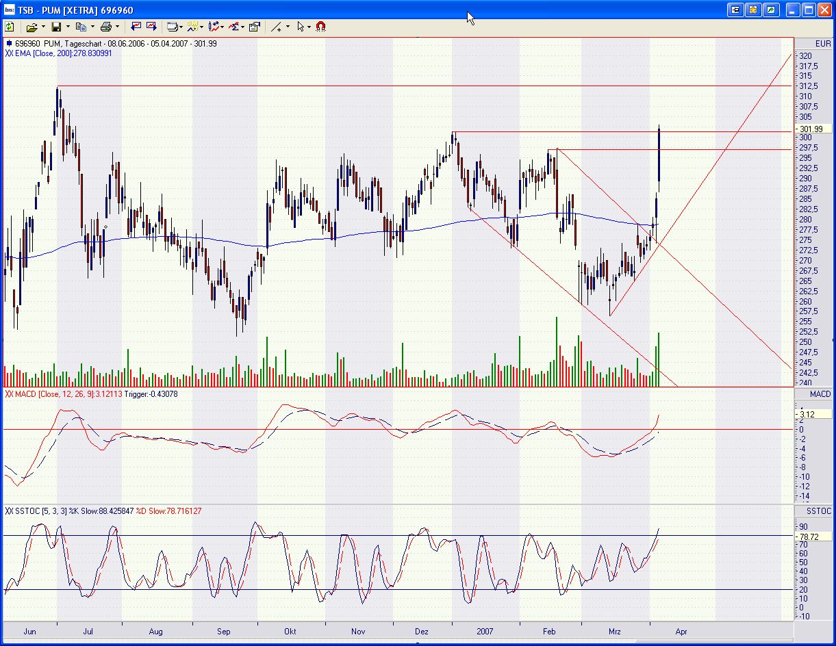 ...ist doch wohl völlig überzogen. Da wird die Aktie verprügelt, als wenn das Unternehmen kurz vor der Pleite stünde, dabei ist Puma doch ein grundsolider Wert. Und typisch: kaum sind die Zahlen da und der Kurs rutscht, schlagen noch ein paar Analysten in die Kerbe und geben ein Sell-Rating (Société Générale). Da wollen sich doch nur wieder einige Investoren billig eindecken...