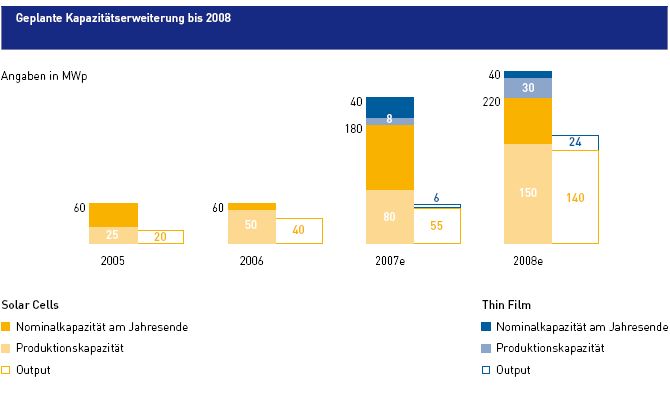 Seit Ende 2006 stelle ErSol in zwei neuen Fertigungsstätten seine Produkte her. Damit sei die Kapazität im kristallinen Bereich von 60 auf 180 Megawatt (MW) ausgeweitet worden und in der Dünnschichttechnologie betrage nun die erstmalige Kapazität 40 MW. Da die anvisierte Produktion für das kommende Jahr bereits fast ausverkauft sei, würden sich die Risiken in Grenzen halten.