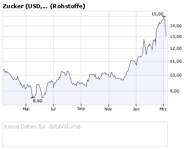 Am 26. Februar dieses Jahres meldete sich nämlich die Internationale Zucker Organisation zu Wort und sprach davon, dass der Angebotsüberschuss ihren Berechnungen zufolge bei 9,3 Millionen Tonnen liegen wird. Das ist zwar gegenüber der Vorsaison immer noch ein leichtes Minus aber eben erheblich höher als die Schätzung des USDA. Spätestens dann erkannten auch viele Marktteilnehmer, dass die Zucker-Notierungen viel zu weit gelaufen waren und es kam zu heftigen Kurs-Korrekturen von 15 auf unter zwölf US-Cents.