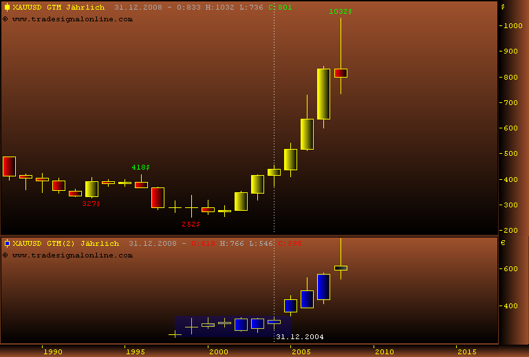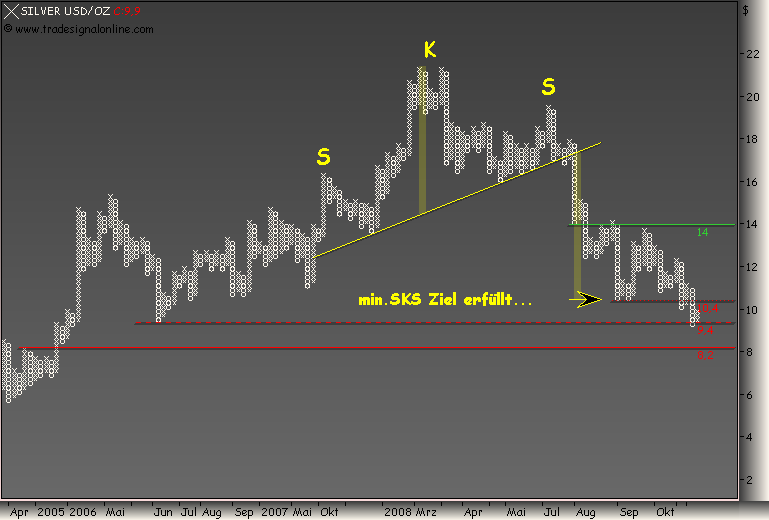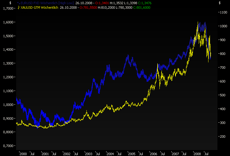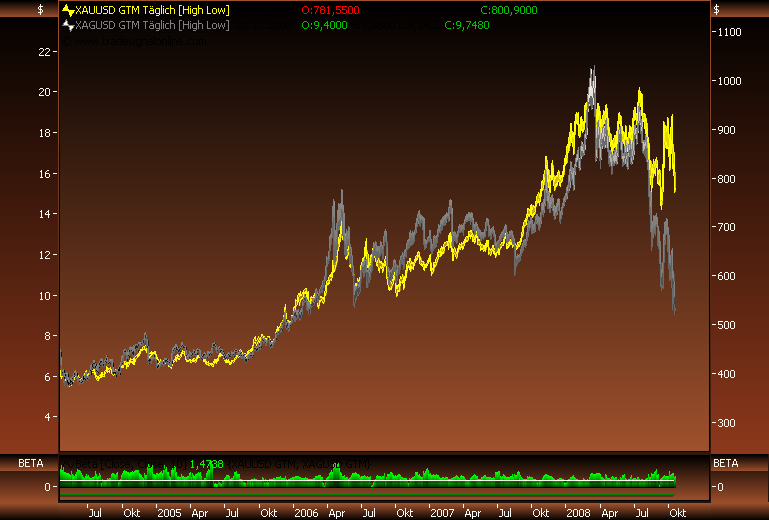P.S. Wäre mal interessant, aufgrund der Finanzkrise (wenn nicht jetzt wann dann!!) einen Langfristchart Gold/Silber und einen Langfristchart DOW Jones/S&P sowie EURO/Dollar gegenüberzustellen, gleiche Laufzeit aller Charts!