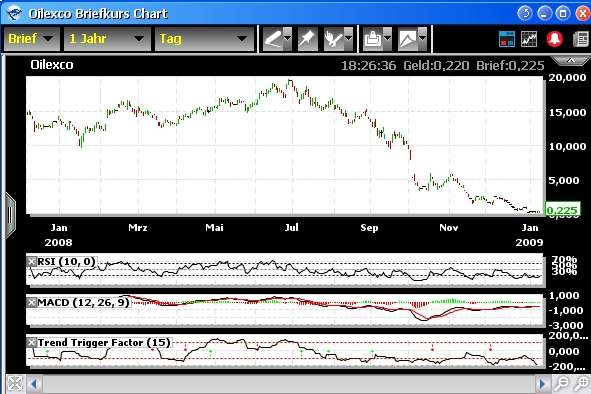 News auf der Homepage... Calgary, Canada, January 7, 2009 - Following the Company’s announceme­nt of December 31, 2008, Oilexco Incorporat­ed (“Oilexco”­) announced today that its wholly-own­ed subsidiary­ Oilexco North Sea Limited was subject to an order from the court appointing­ four administra­tors from Ernst and Young to take over the function of the Board of Directors.­ Oilexco North Sea Limited’s operations­ will continue to be conducted in a safe and orderly manner.