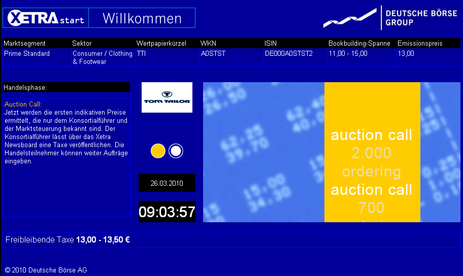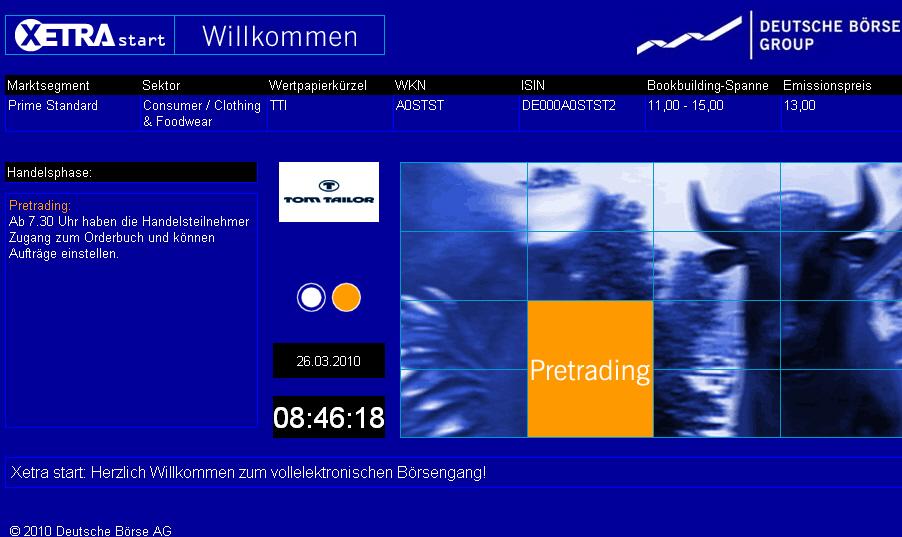 Handelsbeginn 26. März 2010