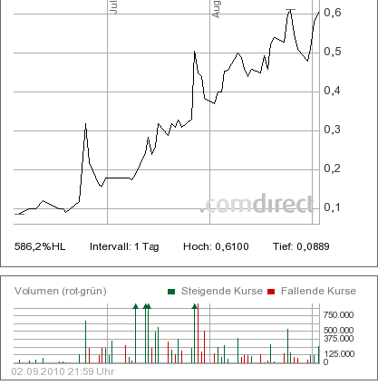 ... und das bei einem Börsenw­ert von NUR 10 Mio € .... die Aktie kann auf 1 € steigen !