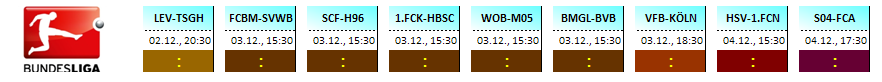 Die Übersicht der Partien des 15.Spieltages der 1.Bundesliga, Saison 2011/12 zum tippen: