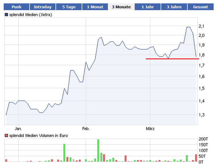 Finde bei Splendid ist auf Niveau von ca. 1,9 Euro noch 20 % Upside in den nächsten Wochen möglich.