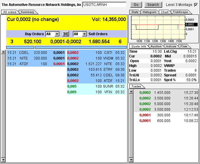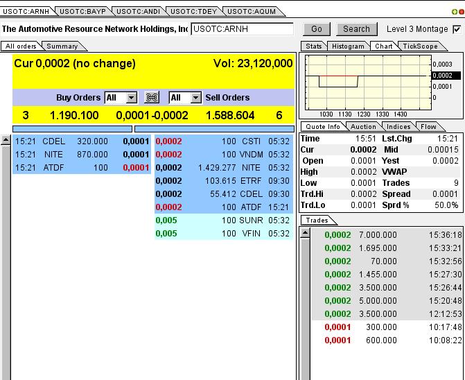 Die Aktie von ARNH steht vor dem Rebound. THE AUTOMOTIVE RESOURCE ist eine Holdinggesellschaft die sich auf das Beteiligen von Small und Mid Cap Unternehmen spezialisiert hat. Aufgrund der verzögerten Zahlen ist die Aktie auf ihr Allzeittief bei 0,0001$ gefallen. Die fehlenden Zahlen wurden nun endlich letzten Monat nachgereicht und der 3 Phasen Plan des CEO trägt erste Früchte. Durch das starke Wachstum in diesem Jahr, konnte die Firma erstmals schwarze Zahlen in 2013 vermelden. ARNH konnte alleine dieses Jahr ihr Portfolio um mehr als 5 Mio. Dollar steigern und so Ihre Assets auf über 17 Mio. Dollar ausweiten. Aktuell startet die Aktie gerade den Rebound. Alleine die Tatsache das ARNH in 2014 das Börsensegment zur AMEX wechseln möchte, wird den Kurs antreiben. Durch die damit verbundene Transparenz möchte ARNH zu einem der führenden Unternehmen dieses Multi Milliarden Segments werden. Total Assets / Vermögen: 17,355,286$ Total Liabilities / Schulden: 73,540$ Cash: 101,237$ Gross profit: 67,459$ www.covenantalliancegroup.net Share Structure Market Value1 $428,868 a/o Oct 14, 2013 Shares Outstanding 4,288,680,197 a/o Aug 22, 2013 Authorized Shares 4,850,000,000 a/o Mar 31, 2013 Beneficial Shareholders: Kathleen Roberton Three Billion Common shares (75%)