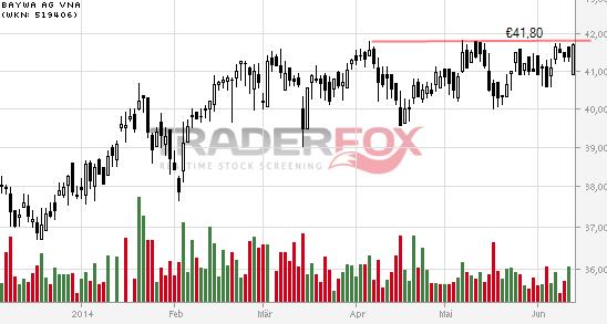 Sollten sich CBS befürchtungen nicht bewahrheiten, wäre Baywa bei 35-36 € ein klarer Kauf. Über 37,7 € zu kaufen, wie BoerseOnline schreibt, macht charttechnisch aber keinen Sinn, da bei 39,5 ja der kräftige Widerstand aus den alten Verlaufstiefs der Seitwärtsbewegung wartet.