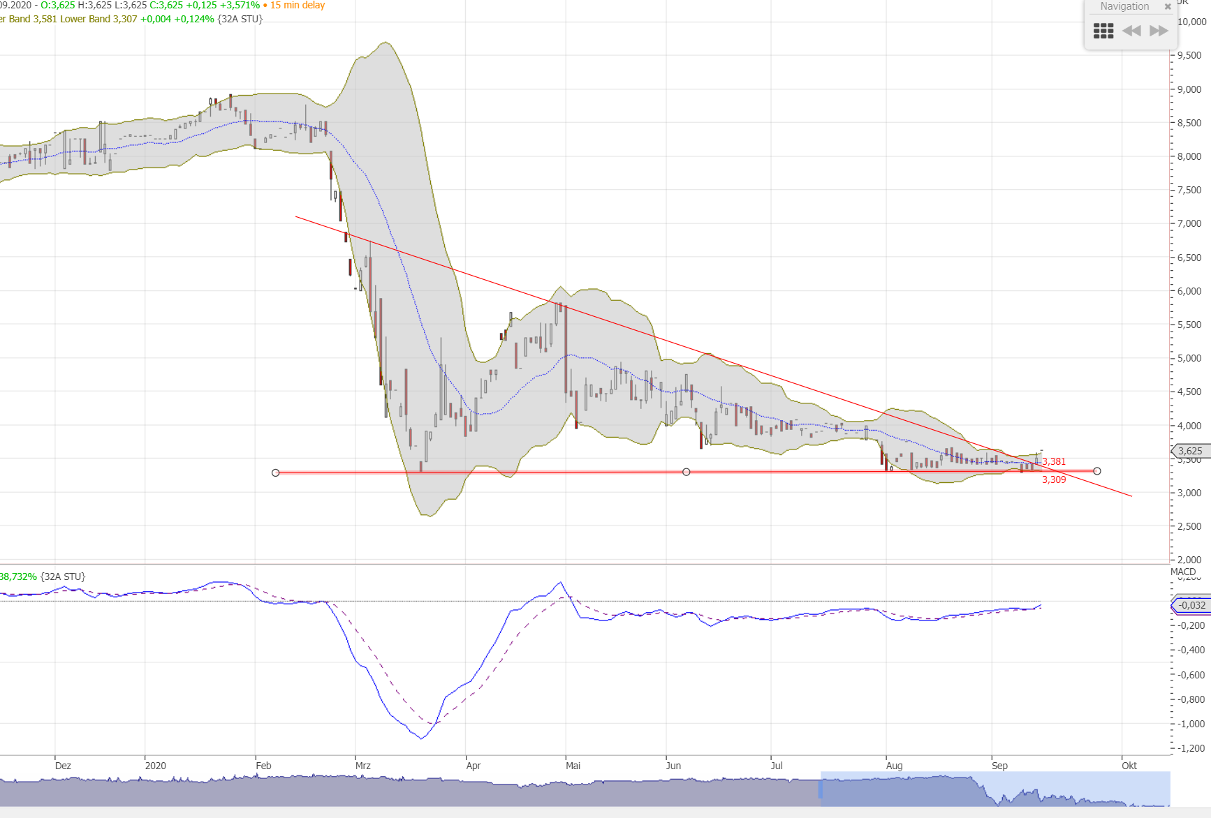 Kurs bleibt vorerst an der unteren Kurszielgeraden. Das rote Scoring liegt ausschließlich an Covid, die Vor-Corona-Vorhaben laufen wieder an, die Bonitätsfaktoren sind natürlich aufgrund der Coronabeule schlecht, im Zusammenwirken mit den anstehenden Finanzierungen für die Flottenerneuerung und /-erweiterung wird das auch noch eine Weile so bleiben. Der untere Kulminationspunkt liegt hinter uns, wenngleich noch die Gefahr eines Zurückkommens bis an die Retracekante besteht, allerdings sollte dieses Risiko aufgrund der niedrigen Volumina überschaubar sein. Der turn around liegt noch vor uns. Der Piotroski-Wert ist schon maximal, der rote aaqs-score hält schön die Junkies fern.