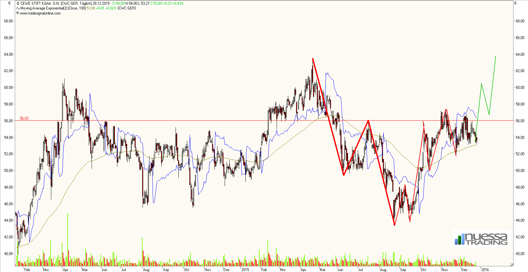 Die Aktie läuft trotz Marktschwäche erstaunlich gut und notiert im Moment nur 1,6 % unter den Hochs aus dem Mai 2015. Gelingt ein Ausbruch darüber und die Chancen stehen wirklich sehr gut, sollte ein sofortiges Kurspotenzial Richtung 82 € freigesetzt werden. Mittelfristig rechne ich sogar mit Kursen um 95 €.
