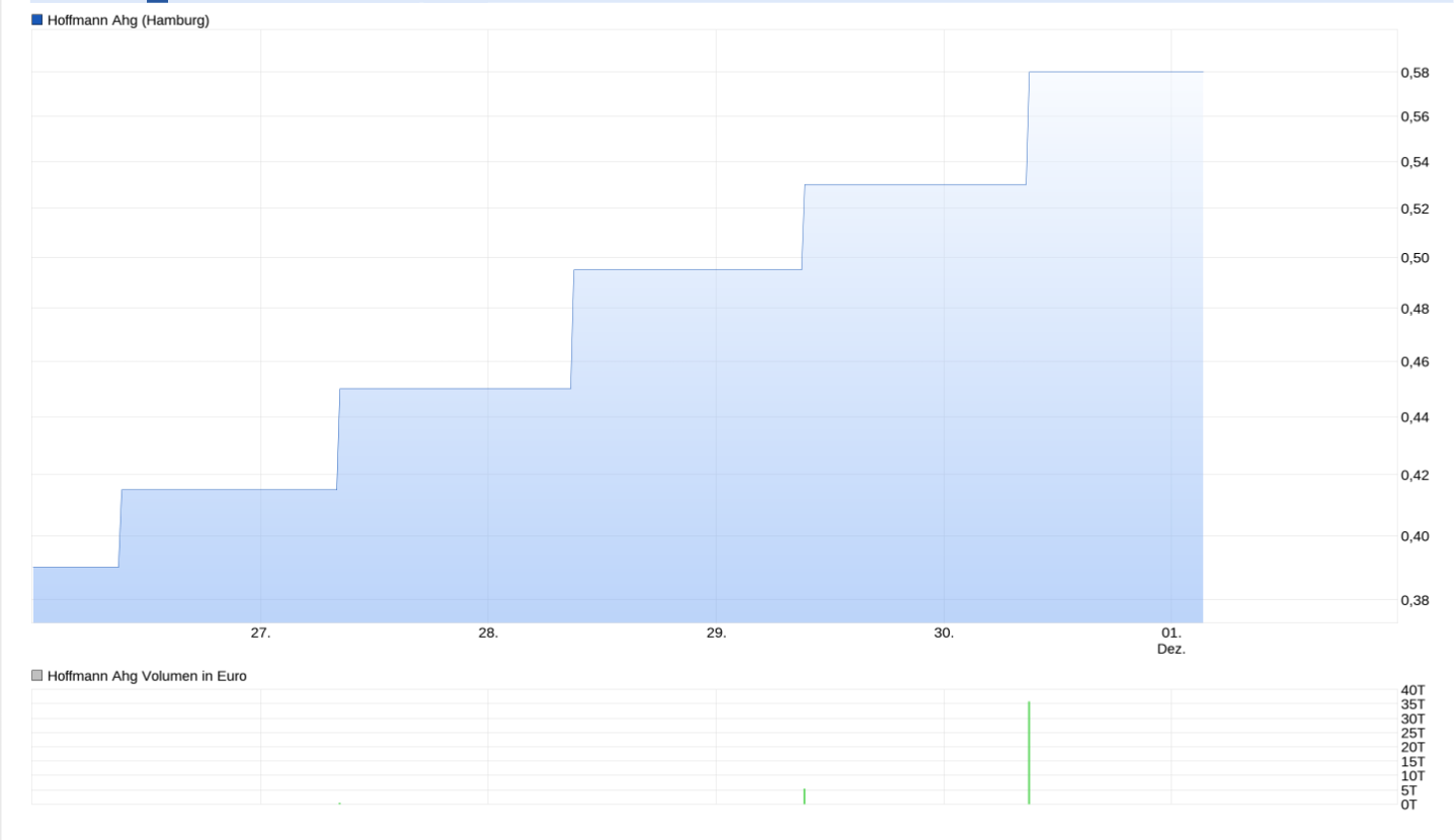 in Hamburg handelbar. Zudem gibt es lediglich 1.000.789 Aktien, das richt nach Kursanstieg...