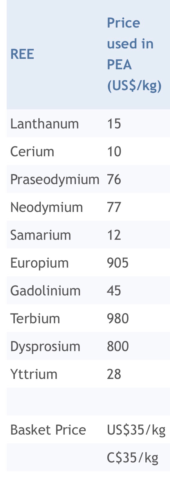 77 US$ Neodymium Preis in der PEA