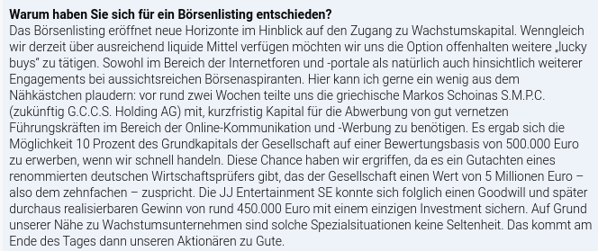 guckst du ... Anhang: >https://ww­w.boersenf­orum.de > Vorstandsi­nterviews >> JJ Entertainm­ent SE