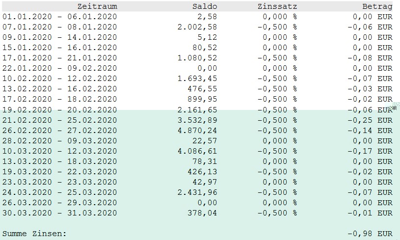 Aber ich denk dass die Negativzin­sen auf das Cash-Konto­ taggenau berechnet werden.