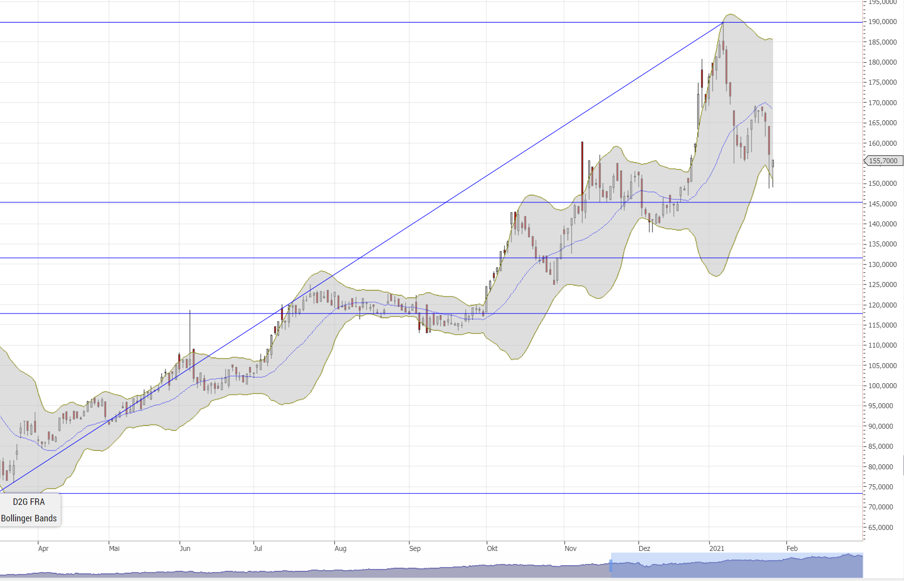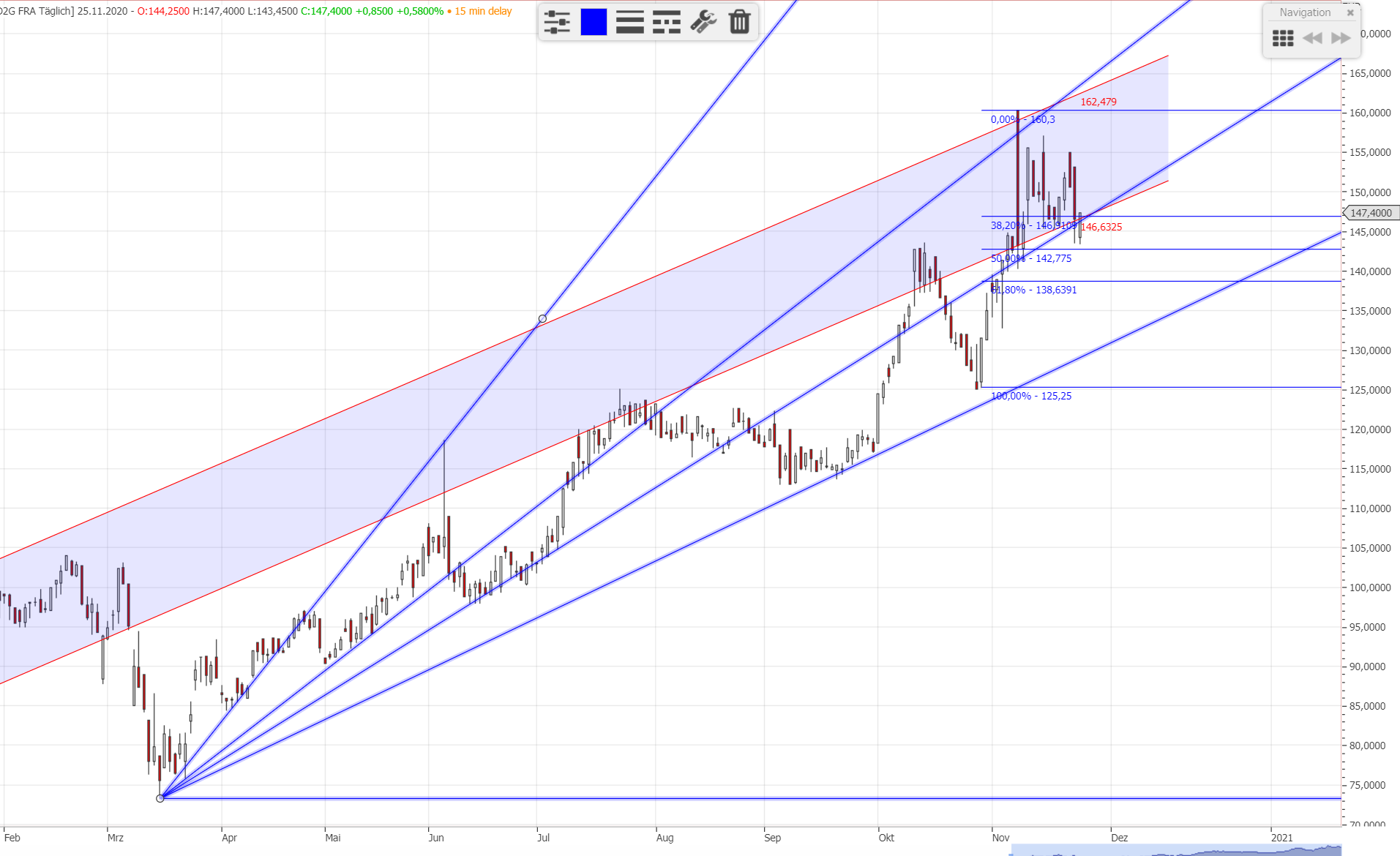 Auch wenn der Wert der Entwicklung der letzten 7 Tage und der Angst vor der zweiten Welle trotzt, so hat er sich noch nicht über die untere Unterstützungslinie der Vor-Corona-Zeit zurückgekämpft.