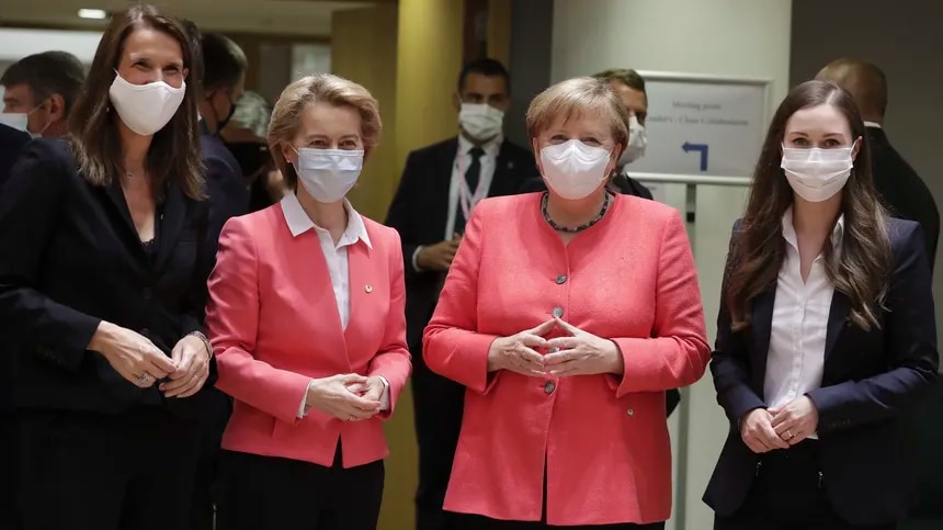 Rechts die Schönheit Sanna Marin, aber leider verdeckt versteckt. Sie ist aber nicht nur schön.