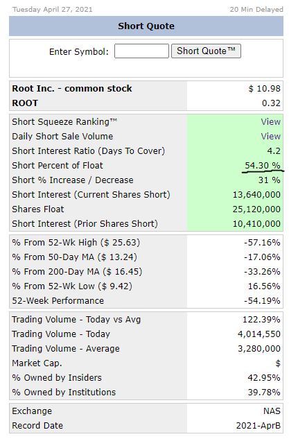Die HF shorten im Moment wie verrückt, z.B. Technologie, Spacs, AMC, GME. Bei AMC und GME haben sie sich in eine Falle manövriert, die Anleger halten mehr !!! als die ausgegebenen Aktien, obwohl die Shortquoten niedriger angegeben werden als bei Root. Die Zukunft von Root sieht aber gut aus, die Verbindung von Versicherung und SaaS, z.B. Fuhrparklogistik. Die Frage ist ob die HF hier auch so agieren wie bei AMC und GME. Leider gibt es bei Root keine so aktiven Communities wie bei den vorgenannten, obwohl Root wirtschaftlich die besseren Perspektiven hat. Aber auch gute Unternehmen habe keine Chance wenn sie die HF fertigmachen. Bei so kleinen schaffen sie das, anders wie Tesla.