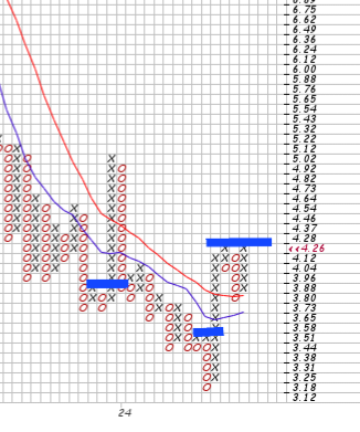 die GDs DREHEN! Da Implat ein fake reversal hatte (einzelnes O gefolgt von X) reiht sich nun X Kolumne an X Kolumne und das zieht die GSs direkt raus aus dem Abwärtstrend in die waagrechte. Noch so ein fake und der Bulle ist los. ; o