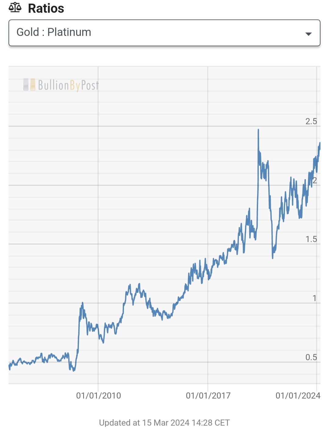 während die "Industrie"-Edelmetalle Pt, Pd, Ag steigen. Ich denke die weissen drei werden ausser für KFZ auch wieder verstärkt für Geldanleger interessant. Warum das teure Gold kaufen wenn die weissen Metalle im Verhältnis viel billiger sind?