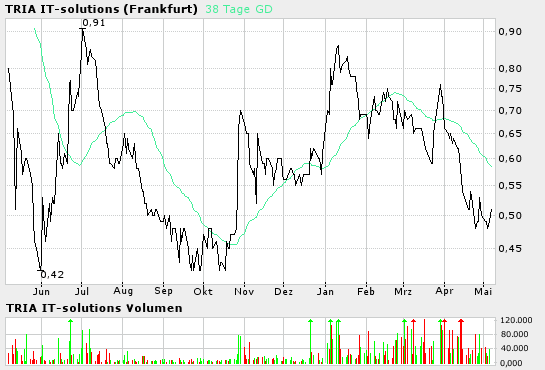 Da das Papier nun ja doch nicht schlecht angezogen hat (immerhin haben wir heute schon meinen Einstand bei 0,58 gesehen) und der Chart mittlerweile auch ganz gut aussieht denke ich mal da geht noch was bis zum Wochenende. Falls TRIA im Plan liegt ist die Aktie in jedem Fall zu billig!!!