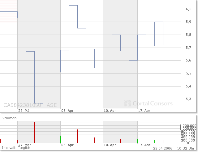 und wieder ein Ausbruchsversuch. Vielleicht schaffen wir es heute bzw. morgen noch über die 6 Dollar- dann kann es nächste Woche abgehen ;-)