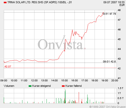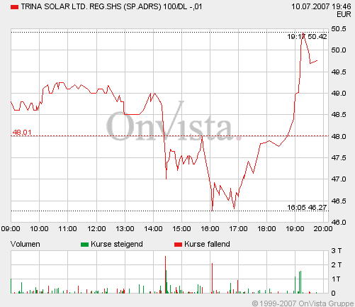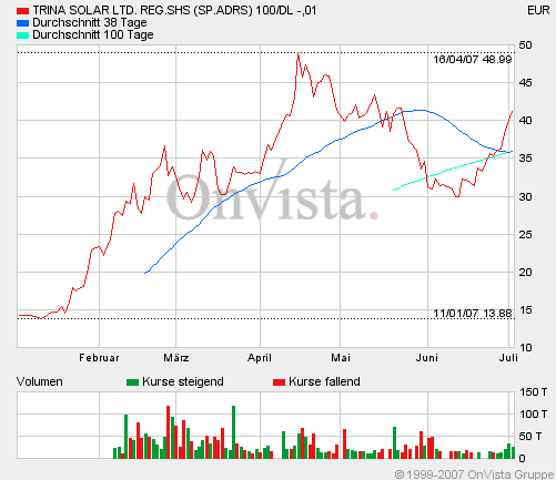 Und wenn der Markt wieder nach unten zieht, wegen der Suprime-Krise, dürfte Trina Solar noch weiter fallen!