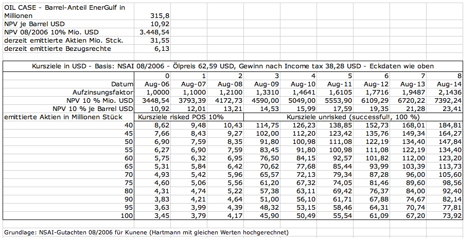 da sollte man auch mal prüfen wie das mit anderen dubiosen Explorerwerten war,spontan fällt mir Energulf ein,die keinen Gewinn machen und bei einem nachweislichen Defizit von 15 Millionen (Ende August)jetzt als 10%-Beteiligte 12 Millionen für die erste Explorationsbohrung Offshore in Namibia aufbringen müssen.Werden übrigens nur gepusht von Bullvestor