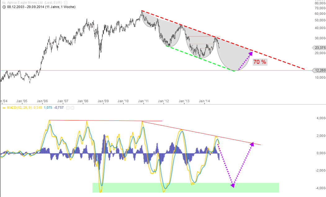 Naja...mal schaun ...irgendwie habe ich aber das Gefühl, dass bei Agnico eine Gegenbewegung erfolgen wird. Viel weiter dürfte der Kurs nicht fallen. Tiefster Stand 2008 war um die 22€. Jetzt ist der Kurs so um die 29€. Kursziel mittelfristig auf die 40€. Langfristig ist bestimmt noch mehr drinne.