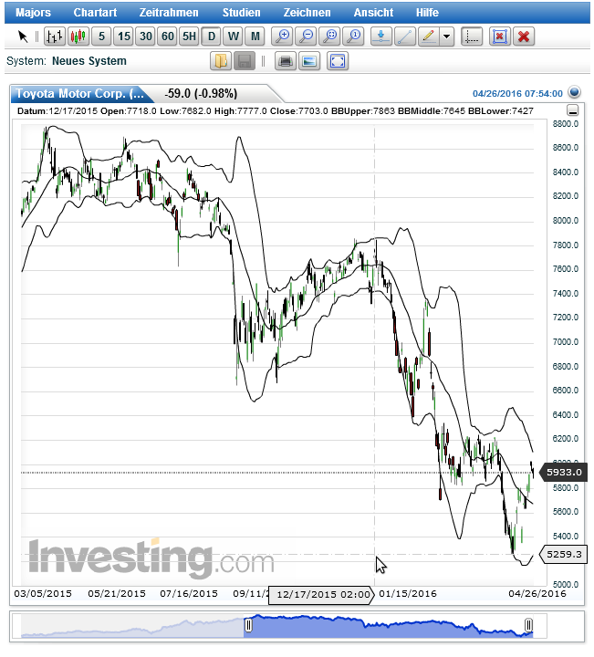 nicht zuletzt verschuldet durch die schweren Umweltkatastrophen in Japan, wodurch vielerlei Lieferketten und somit Produktionen unterbrochen werden mussten. Aber auch der schwere Markt für Toyota tut sein übriges dazu. Bin deshalb erstmal Short gegangen und warte ab. Im letzten Jahr (Daily Chart von März '15) ist bereits ein starker Rückgang zu verzeichnen. Denke das wird ein Trendfolger.
