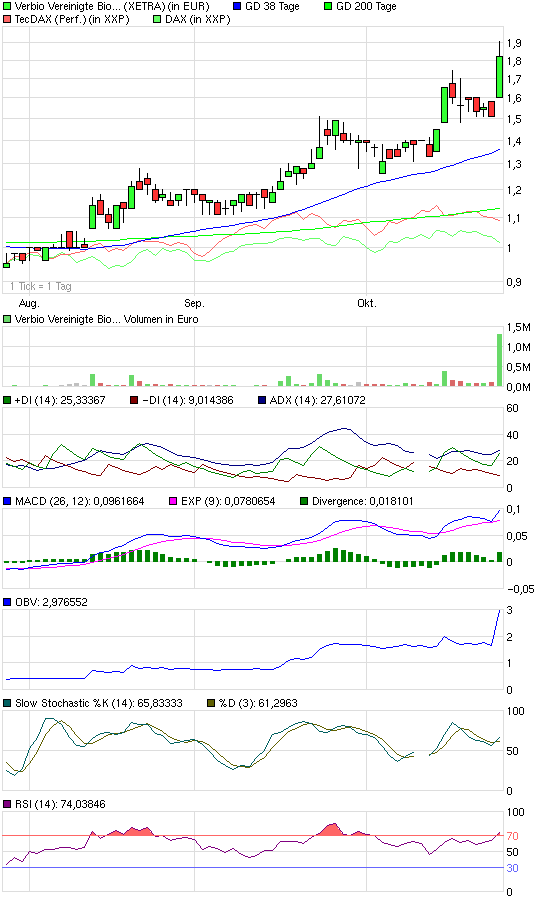 Verbio nutze ich persönlich als Kurz- bis Mittelfristinvest. Wenn der Rohölpreis nach unten abschmiert, werden auch die NaTreibs nach unten fallen - sogar bei der angedachten Förderung der neuen Regierung! Also kurzfristig mit diesen Aktien Geld verdienen und dann vorsichtig sein und Gewinne mitnehmen!!!