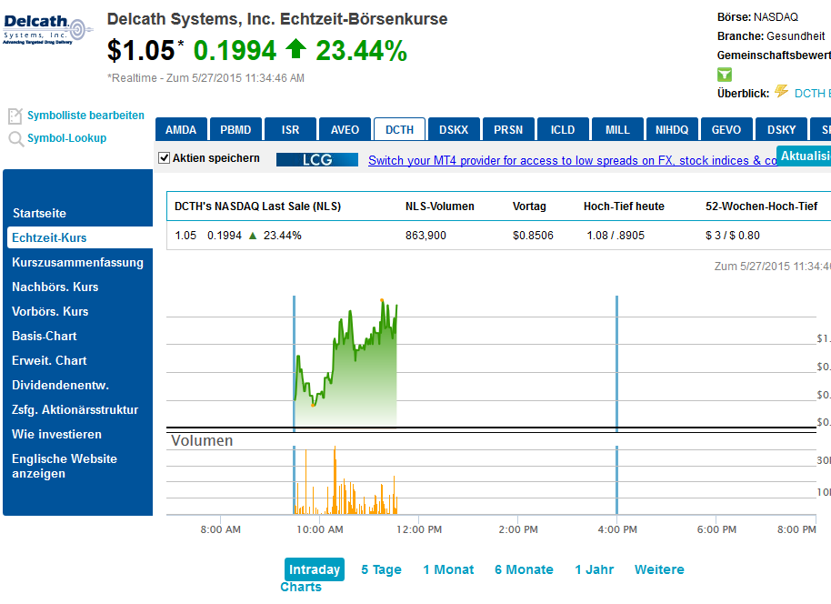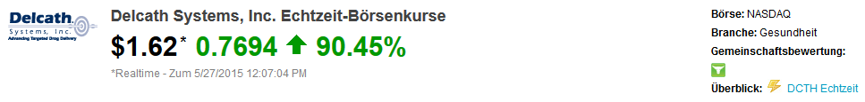 Delcath ist schon ein echt übler Underperformer, abgestürzt von 250 Dollar im High 2010 auf 0,92 Dollar dieses Jahr, der Ruin jedes Depots wer da nicht irgendwann die Reissleine zog.