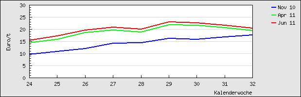Eurex: Schlusskurse für Veredelungskartoffeln (European Processing Potatos) in Euro/100kg
